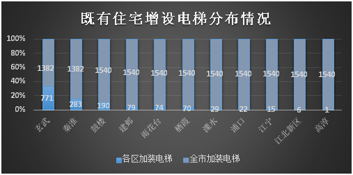 图4 南京市各行政区既有住宅增设电梯验收情况