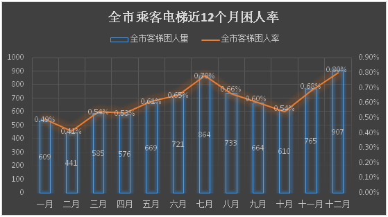 注:全市客梯困人率=每月客梯困人次数÷当月全市在用客梯总数×100%