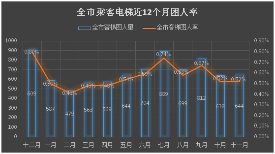 注:全市客梯困人率=每月客梯困人次数÷当月全市在用客梯总数×100%